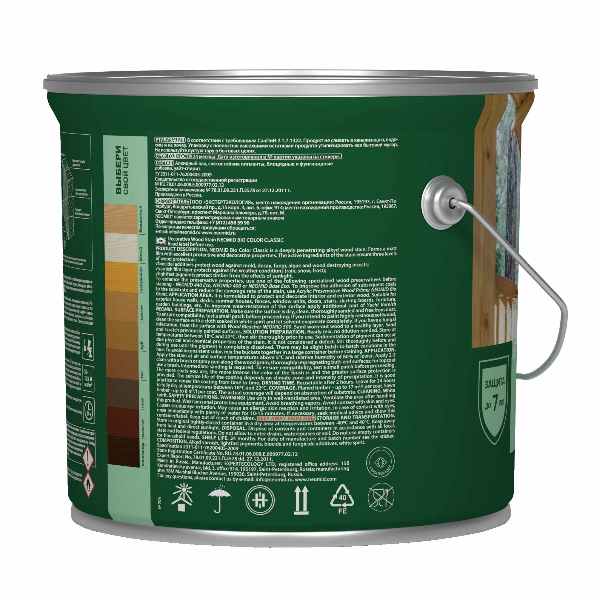 NEOMID BIO COLOR CLASSIC защитная декоративная пропитка на алкидной основе, орегон (2,7л)