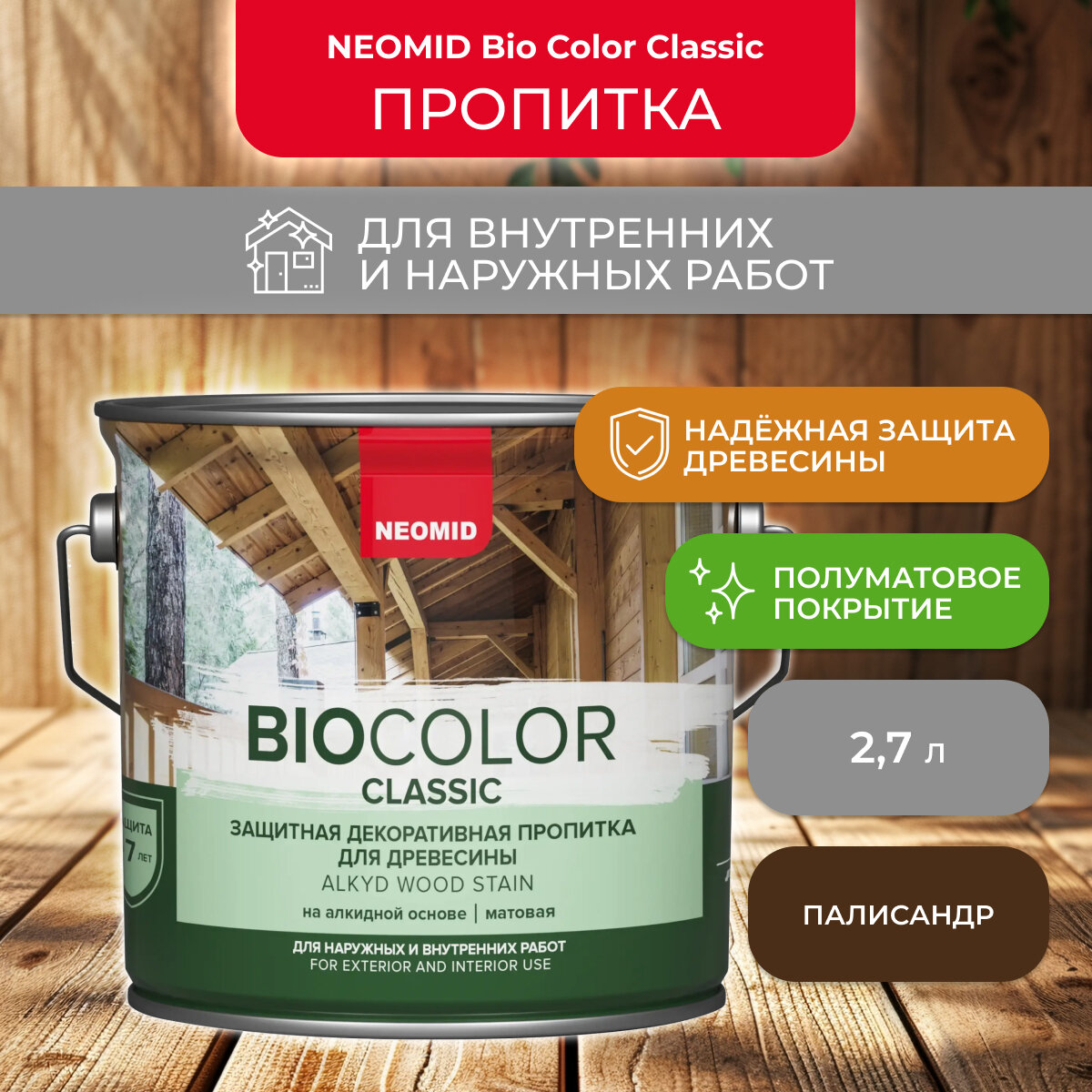 Ниже Вы можете прочитать отзывы на Защитно-декоративная пропитка для дерева Neomid Bio Color Classic, полуматовая, 2,7 л, палисандр, ознакомится с подробными характеристиками, посмотреть интересные обзоры и фотографии на Защитно-декоративная пропитка для дерева Neomid Bio Color Classic, полуматовая, 2,7 л, палисандр.