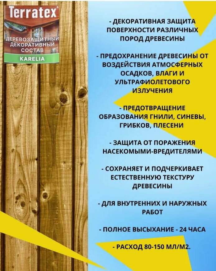 Деревозащитный декоративный состав Terratex палисандр 7,5 кг 9 л 1 интересное: