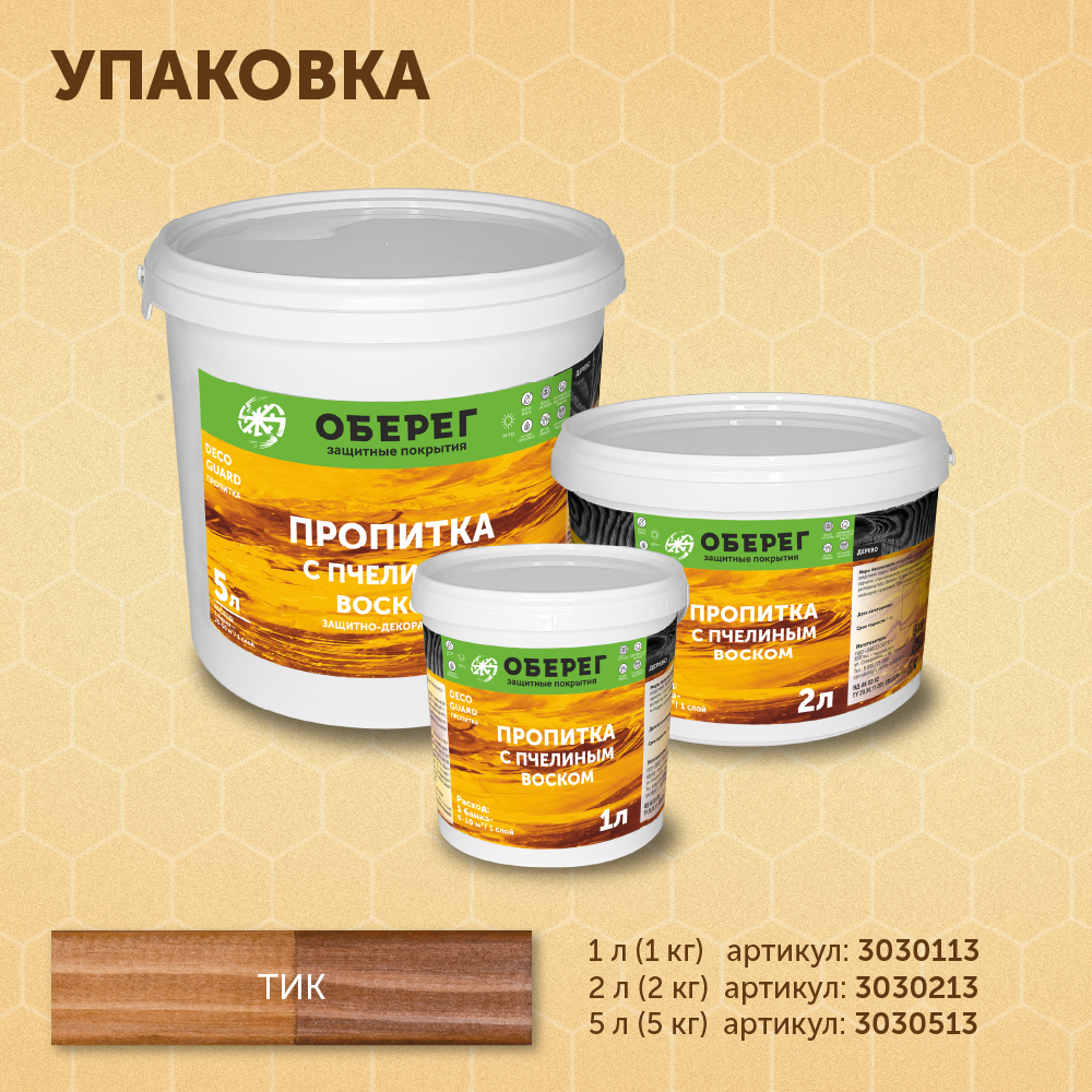 СохранитьПропитка (морилка) для дерева с пчелиным воском DecoGuard Тик (ВД-АК-02-01) - 1л интересное: