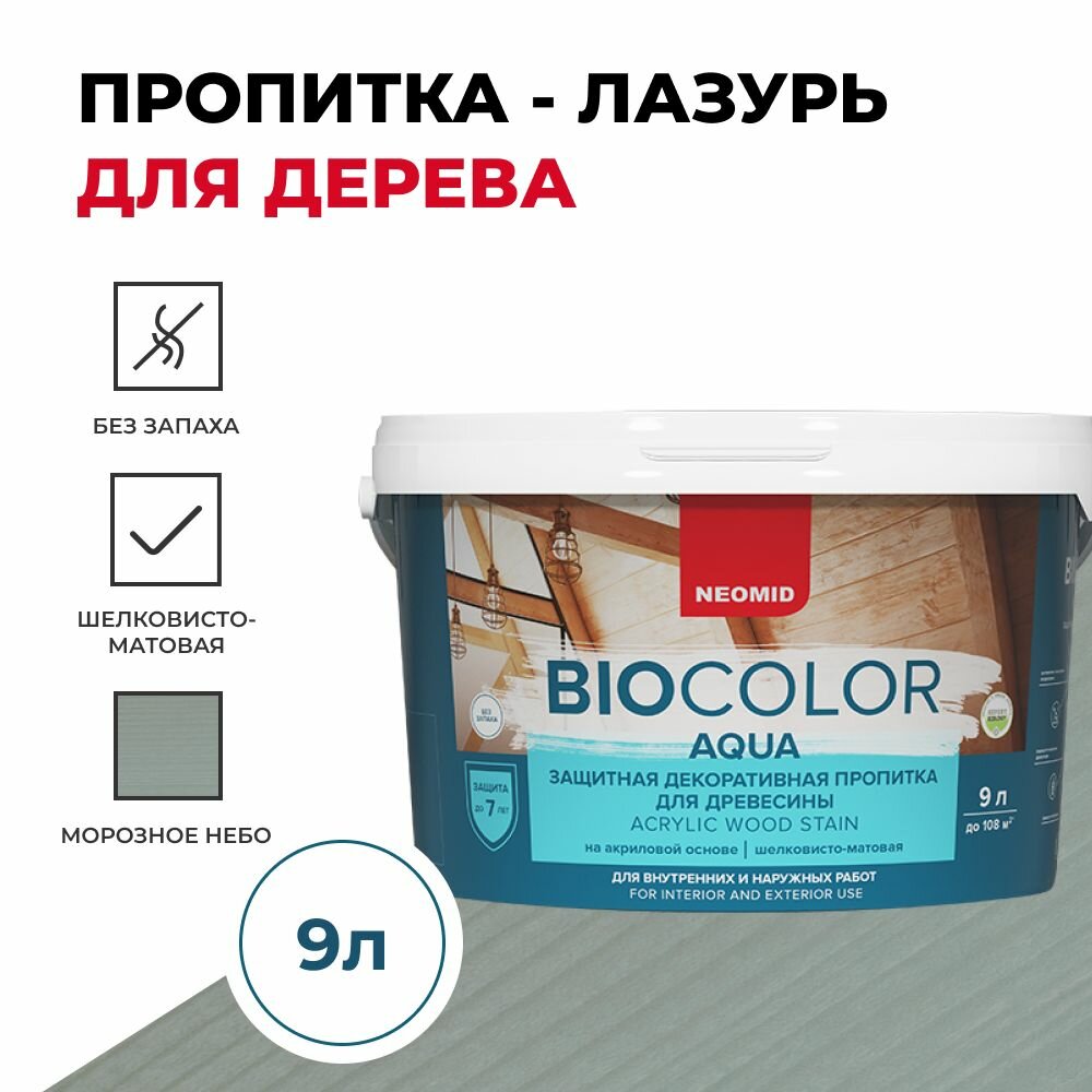 Пропитка защитная для древесины Neomid Bio Color Aqua полуматовая (9л) морозное небо