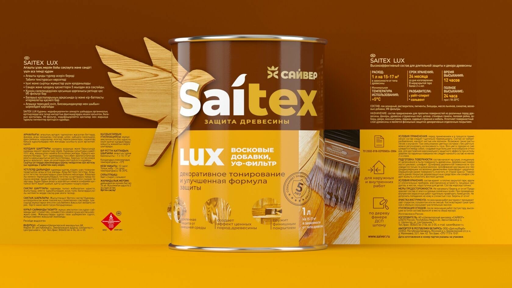 Пропитка, защита для дерева SAITEX LUX / Сайтекс люкс (орегон) 3л