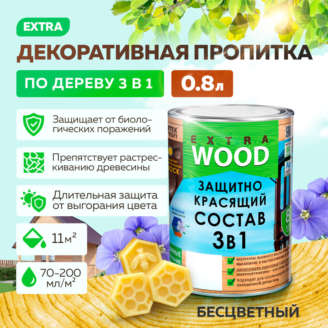Пропитка для дерева защитно-красящий состав 3 в 1 FARBITEX PROFI WOOD EXTRA Бесцветный 0,8 л