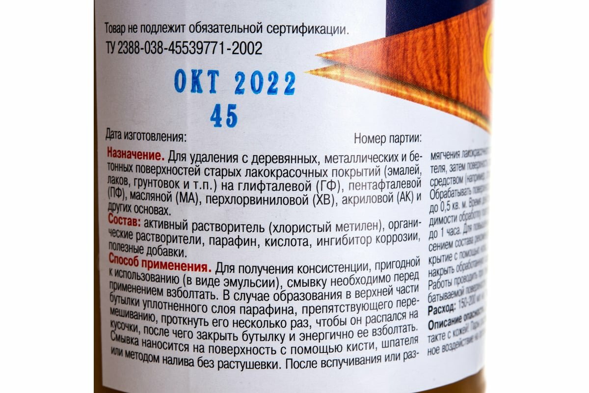 | Применение | для удаления лакокрасочных покрытий |
