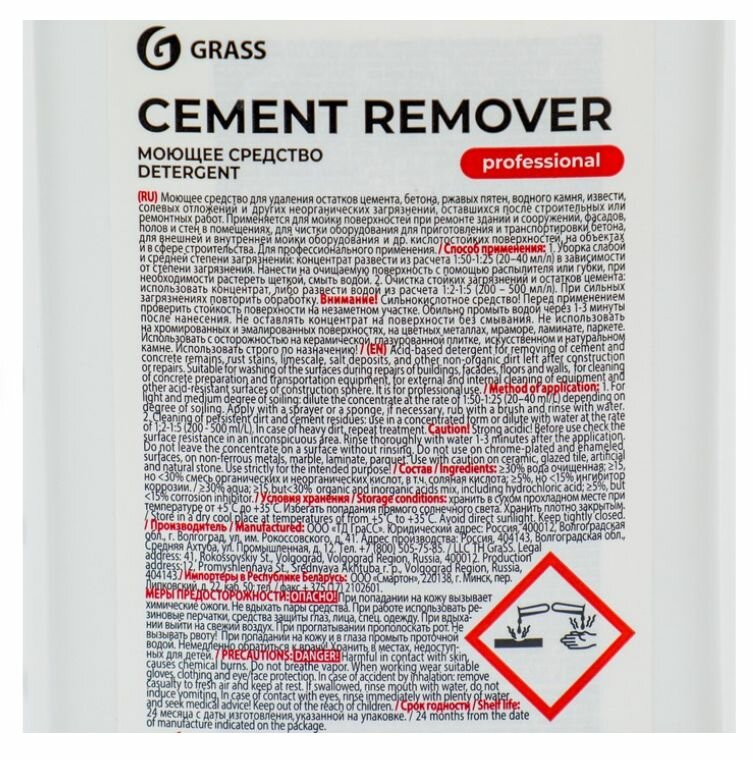 Чистящее средство Grass Cement Remover для очистки после ремонта , 1л .