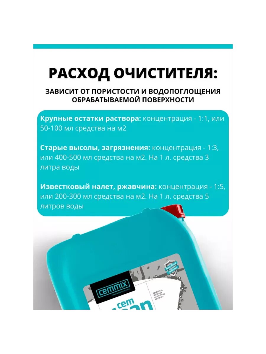 Удалитель высолов и остатков раствора Cemmix CemClean, концентрат, 5 л интересное: