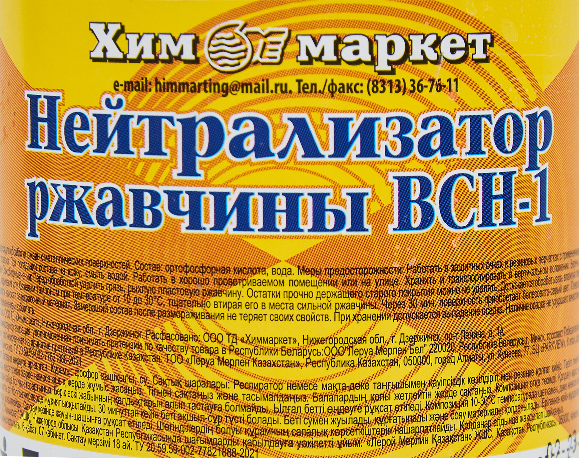 | Дополнительная информация | Нейтрализатор ржавчины ВСН-1 0.5 л |