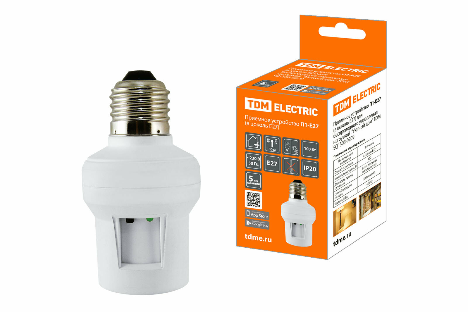 Купить Приемное устройство П1-Е27 (в цоколь Е27) для беспроводного управления нагрузкой "Уютный дом" TDM