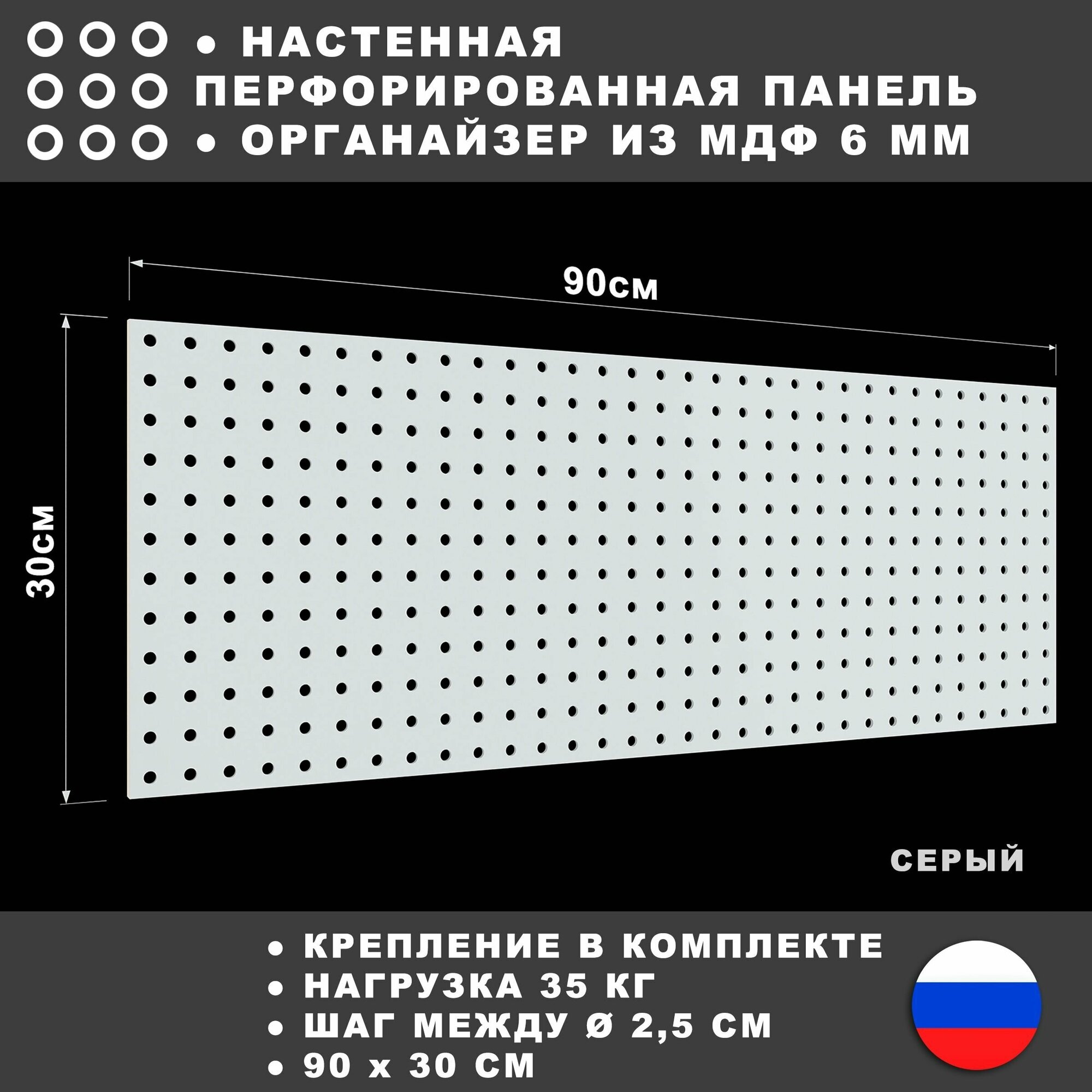 Перфорированная панель 90*30 см Серая МДФ. Перфопанель настенная для хранения инструментов. интересное: