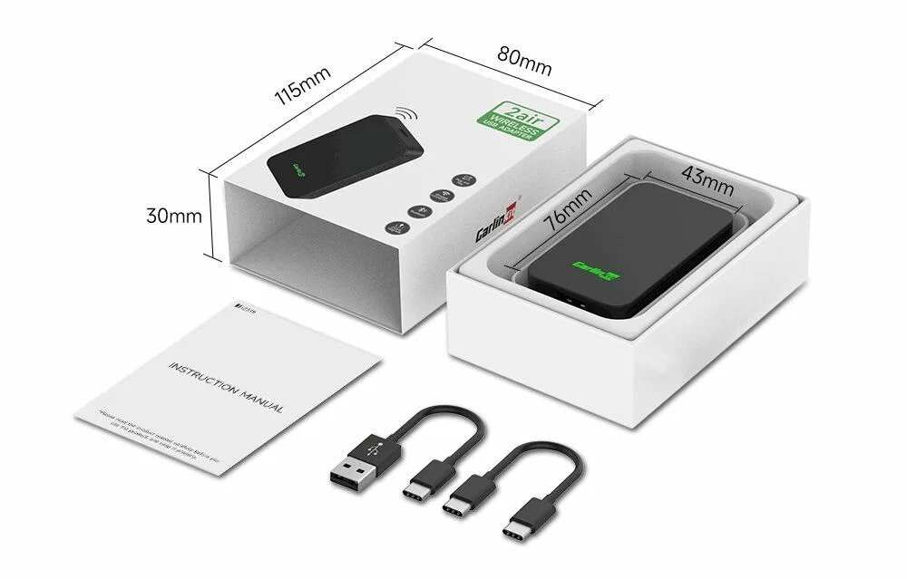 | Комплектация | Адаптер-активатор Carlinkit 2Air(5.0); Инструкция пользователя; шнур USB-A to USB-C; шнур USB-C to USB-C; упаковочная коробка |