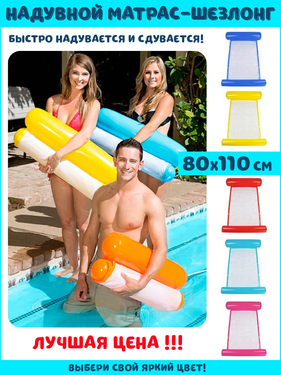 Надувной матрас шезлонг для плавания 110х80 см, Amico / Плавательный водный гамак для бассейна и моря, 125971