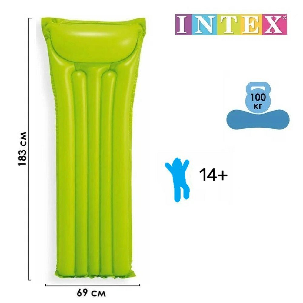 Матрас надувной пляжный 183х69см с подголовником "Яркий", Intex 59703NP зеленый интересное: