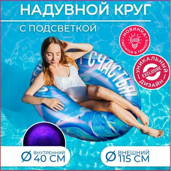 Надувной круг Play Market 91991 для плавания ПВХ полипропилен с подсветкой 115см от 14 лет интересное: