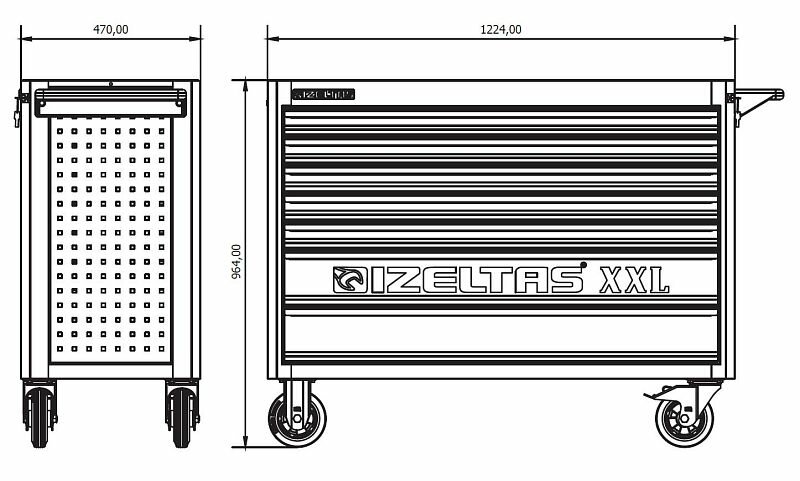 Тележка инструментальная (верстак) серии XXL без инструментов, деревянная столешница, 7 выдвижных ящиков, цвет красно-черный, IZELTAS, 8246321007/13000002478 интересное: