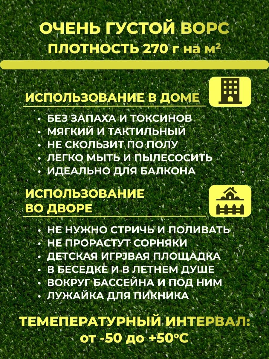 Искусственный газон 2,5х4 м трава для декора в рулоне для балкона дома сада дачи
