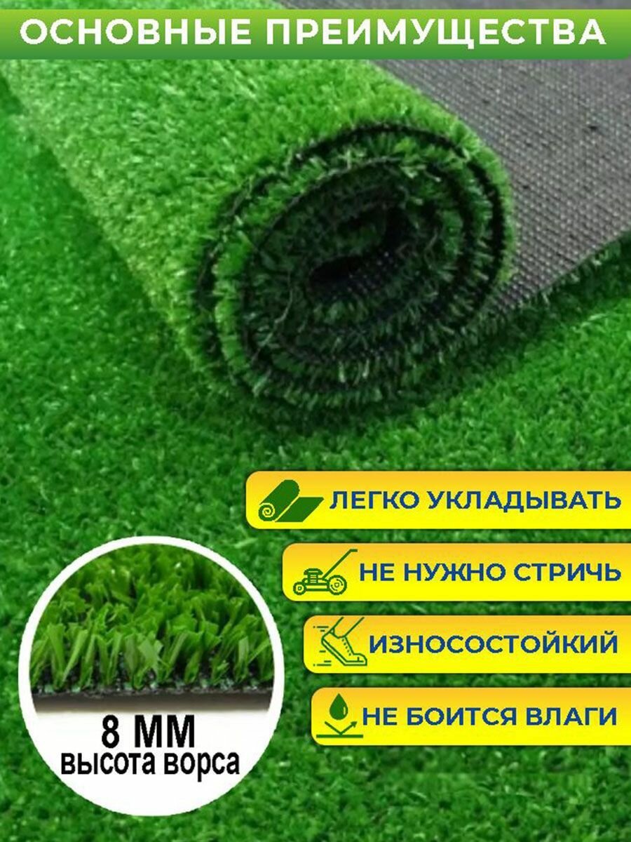 Искусственный газон 150 на 1000 см (высота ворса 8 мм) искусственная трава в рулоне