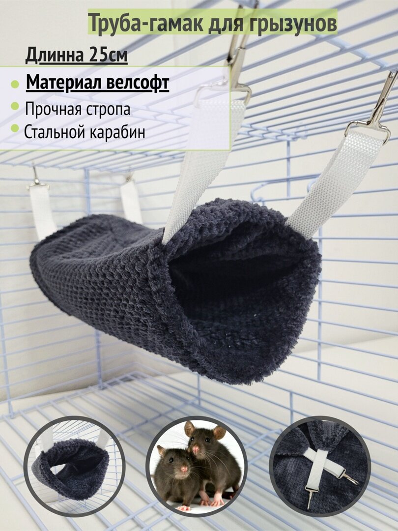 Ниже Вы можете прочитать отзывы на Гамак-труба для грызунов из велсофта соты "Графит", ознакомится с подробными характеристиками, посмотреть интересные обзоры и фотографии на Гамак-труба для грызунов из велсофта соты "Графит".