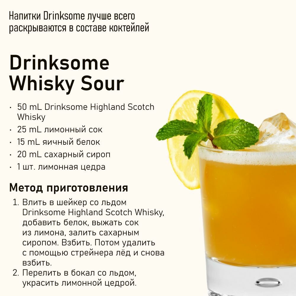 | Рекомендации по употреблению | Напитки Drinksome лучше всего раскрываются в составе коктейлей. |