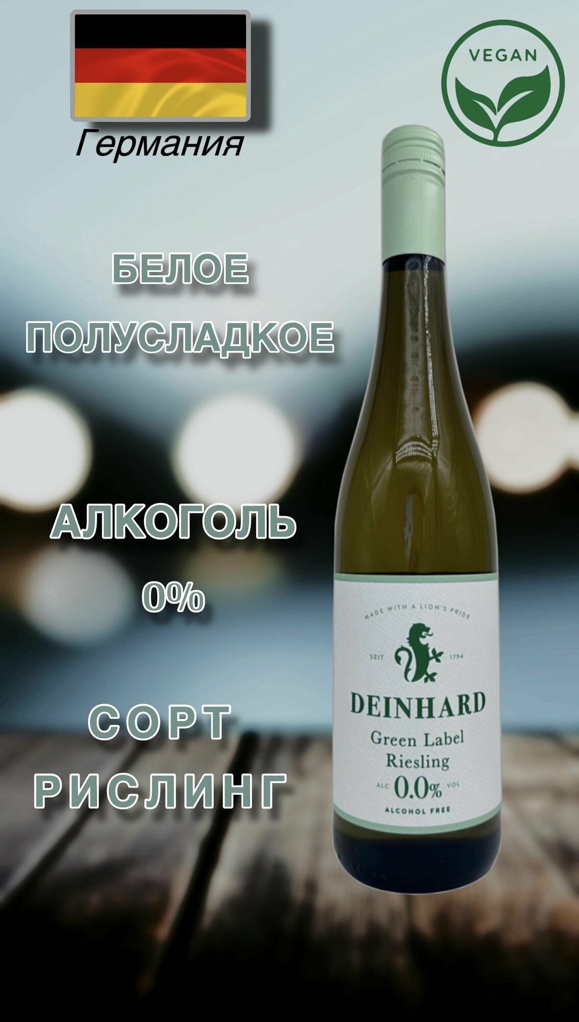 Вино безалкогольное белое Рислинг полусладкое Дайнхард Грин Лейбл интересное: