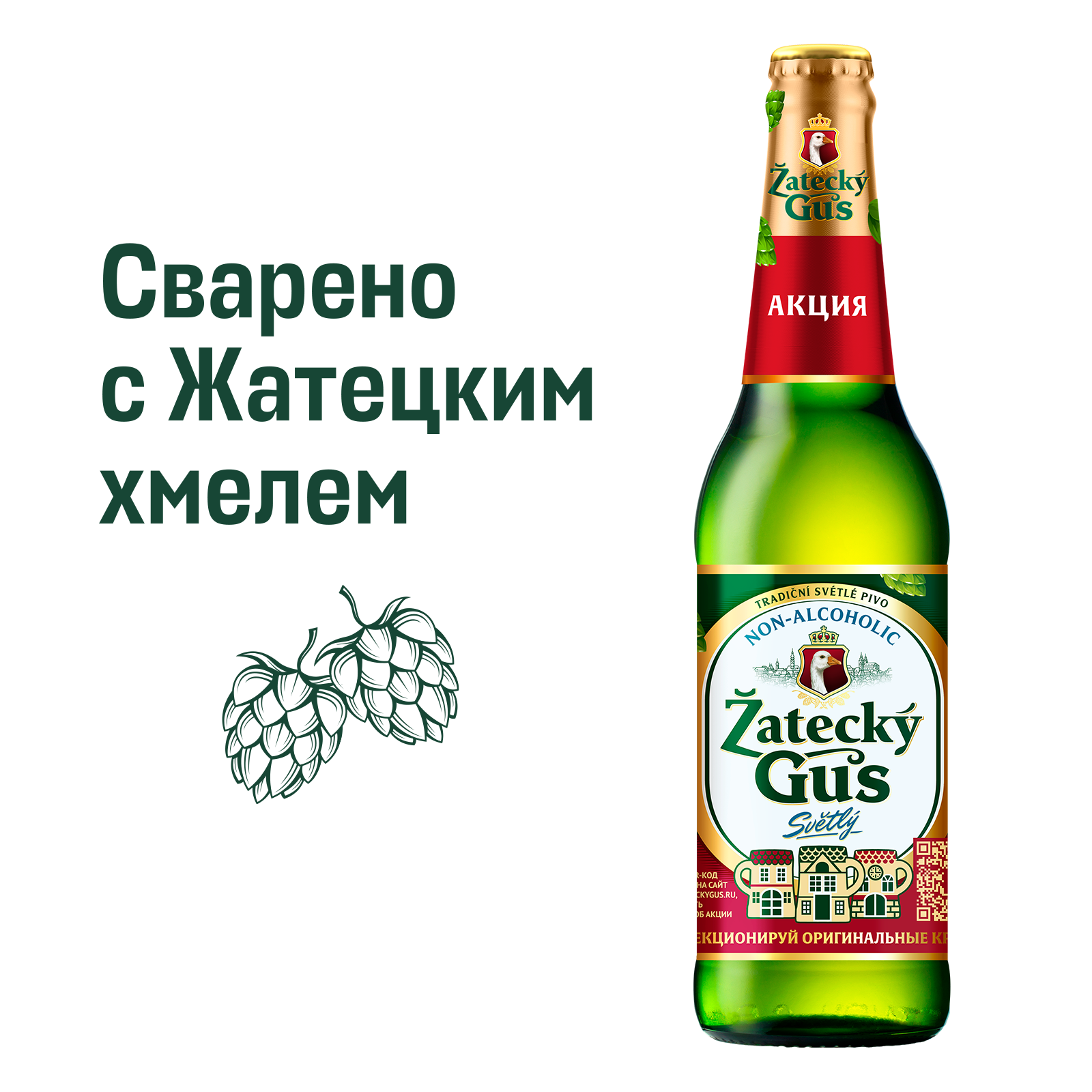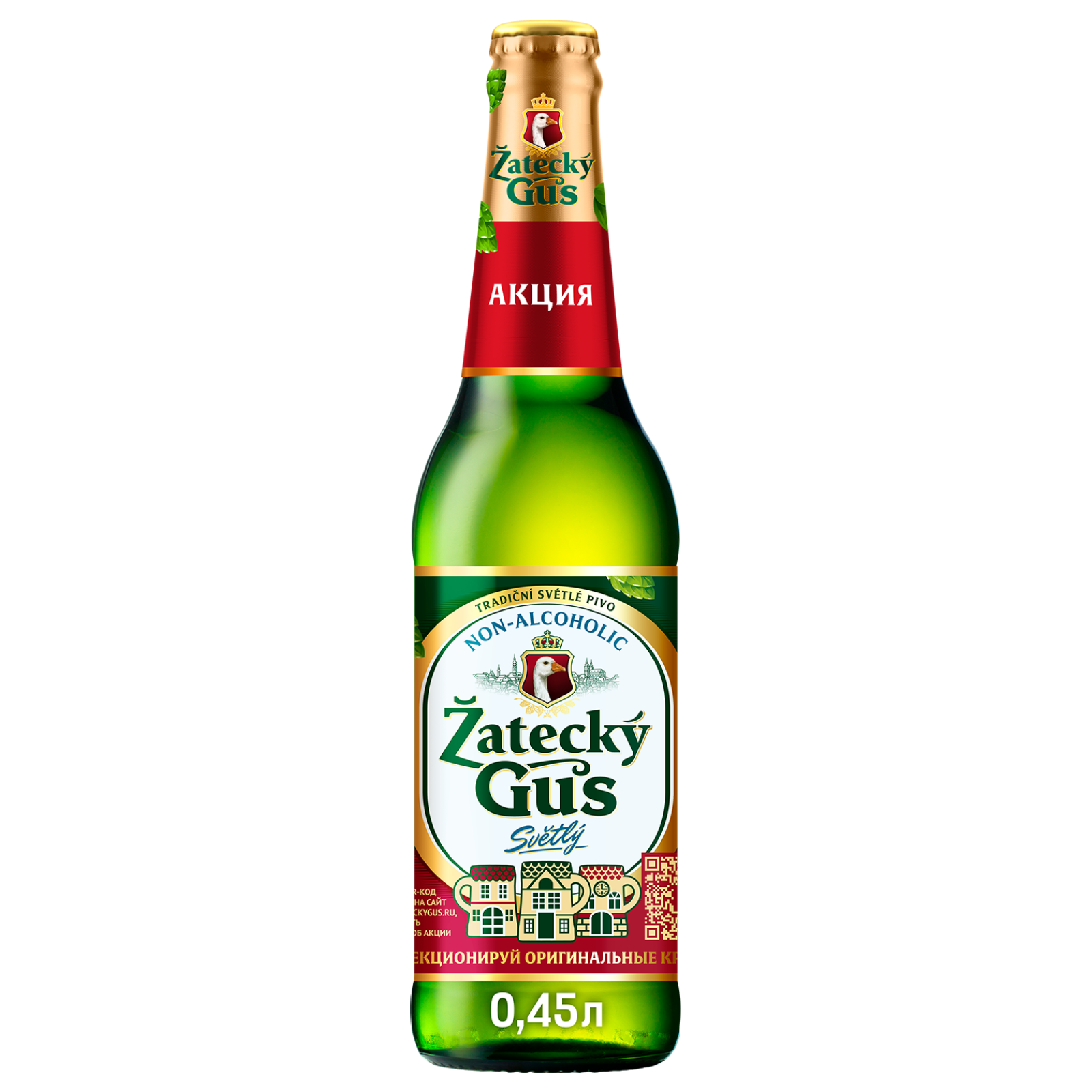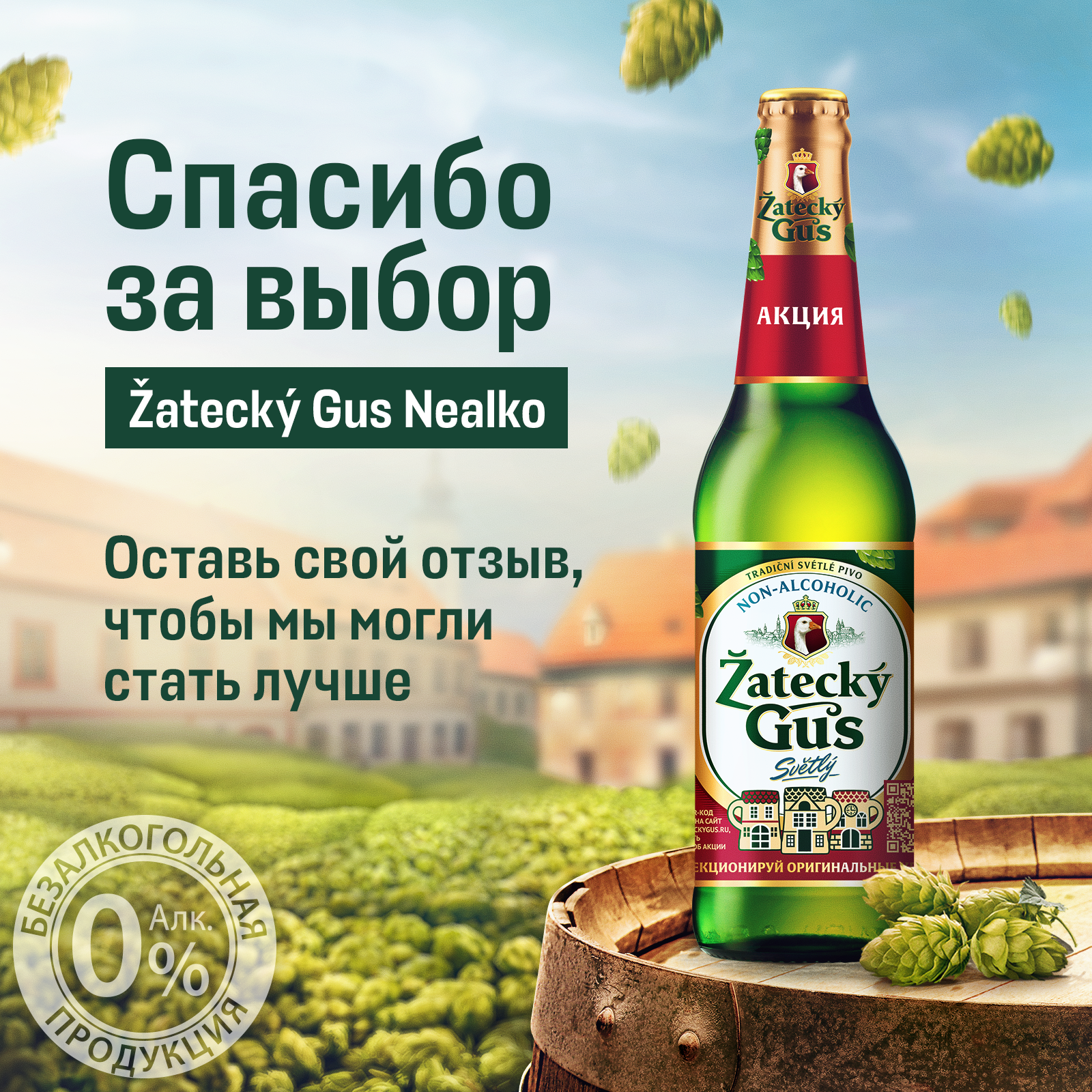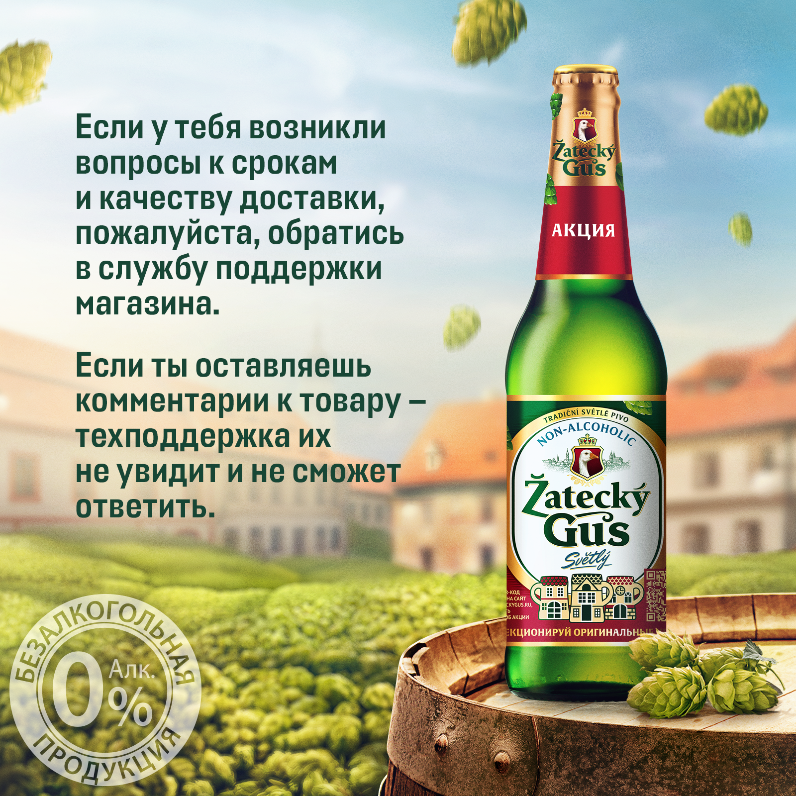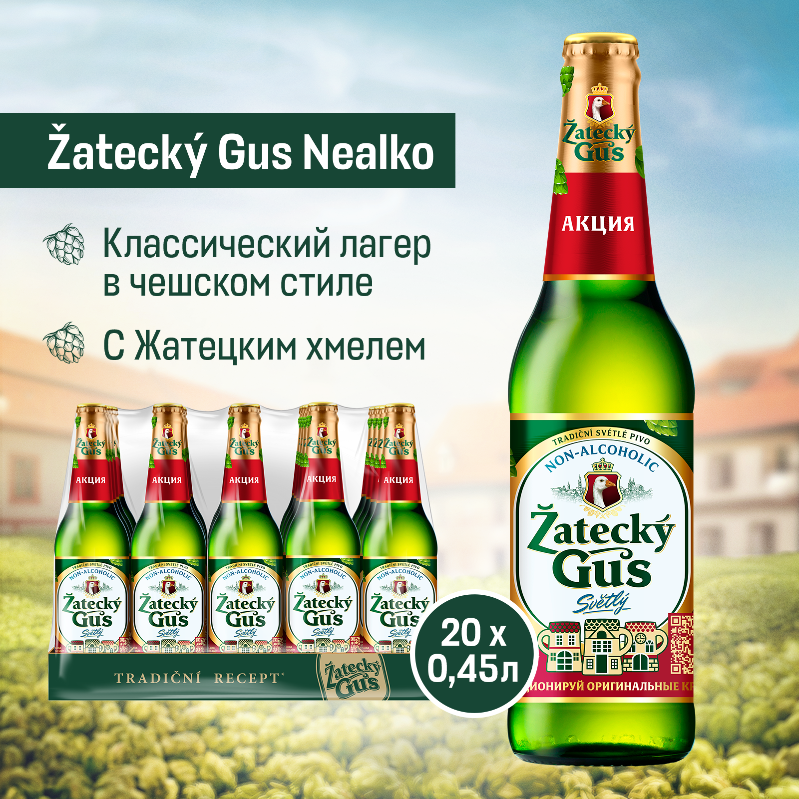 Пиво Zatecky Gus Nealko Безалкогольное Светлое, 20 шт. х 0,45 л, бутылка интересное: