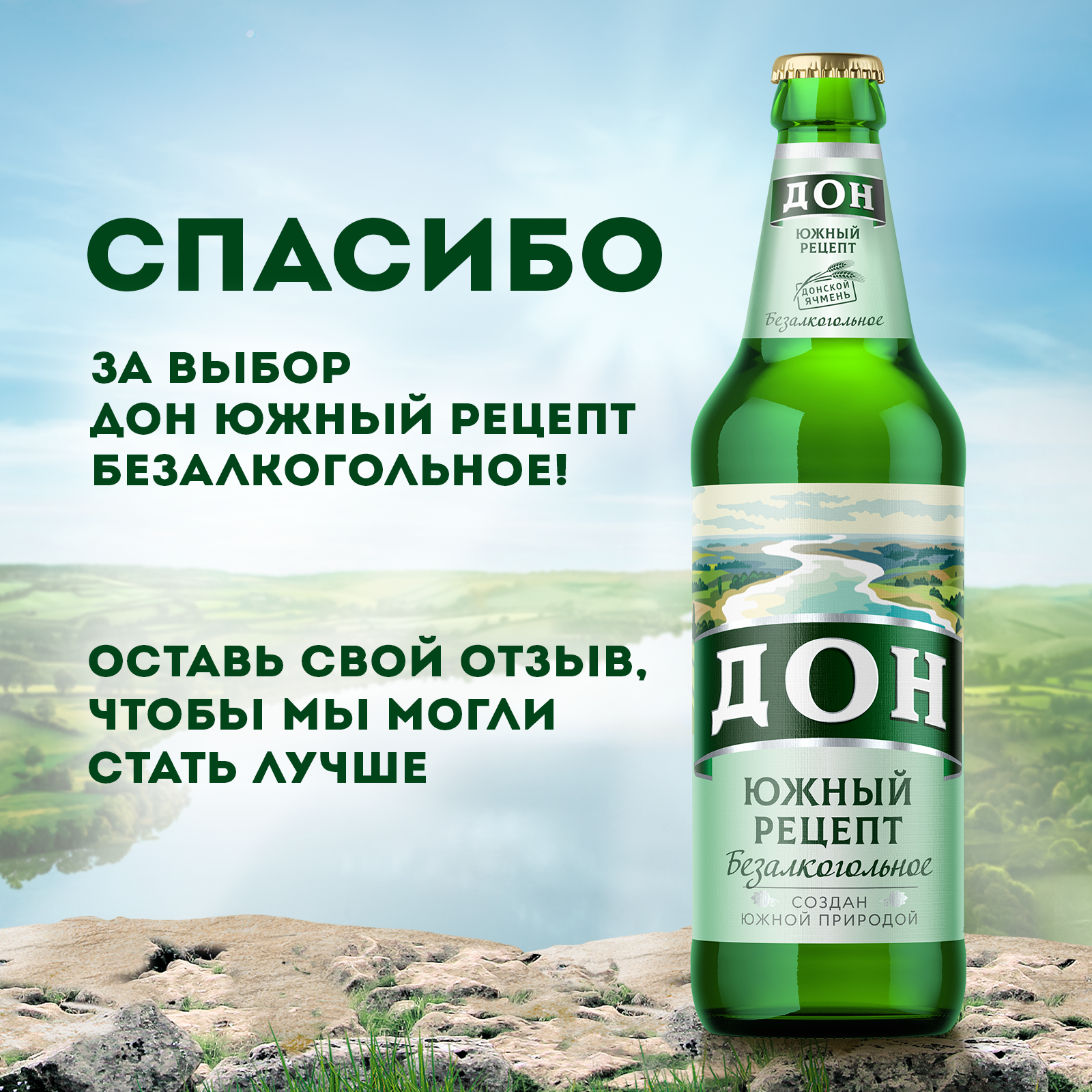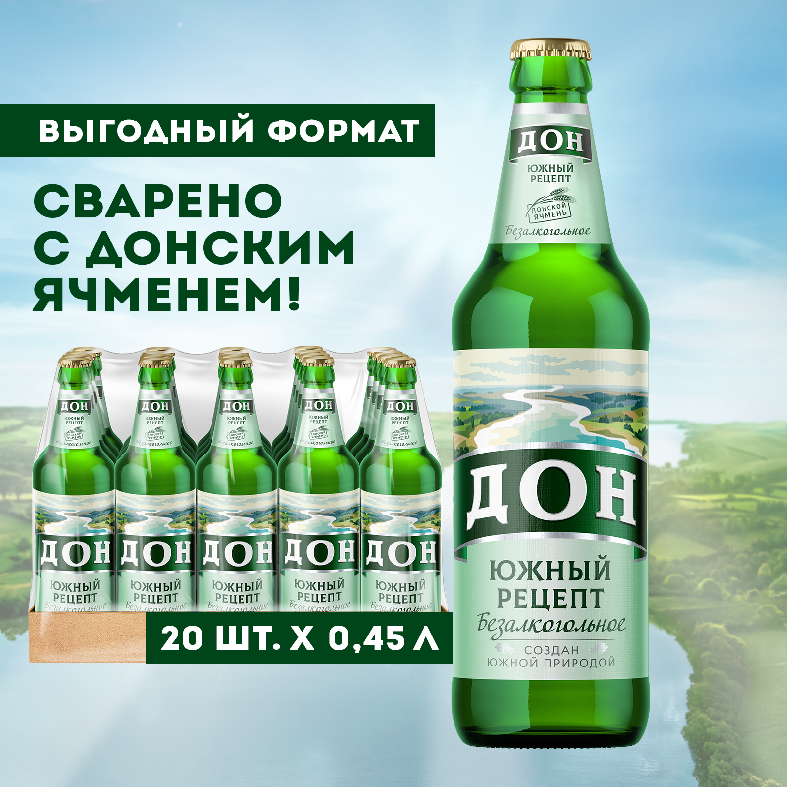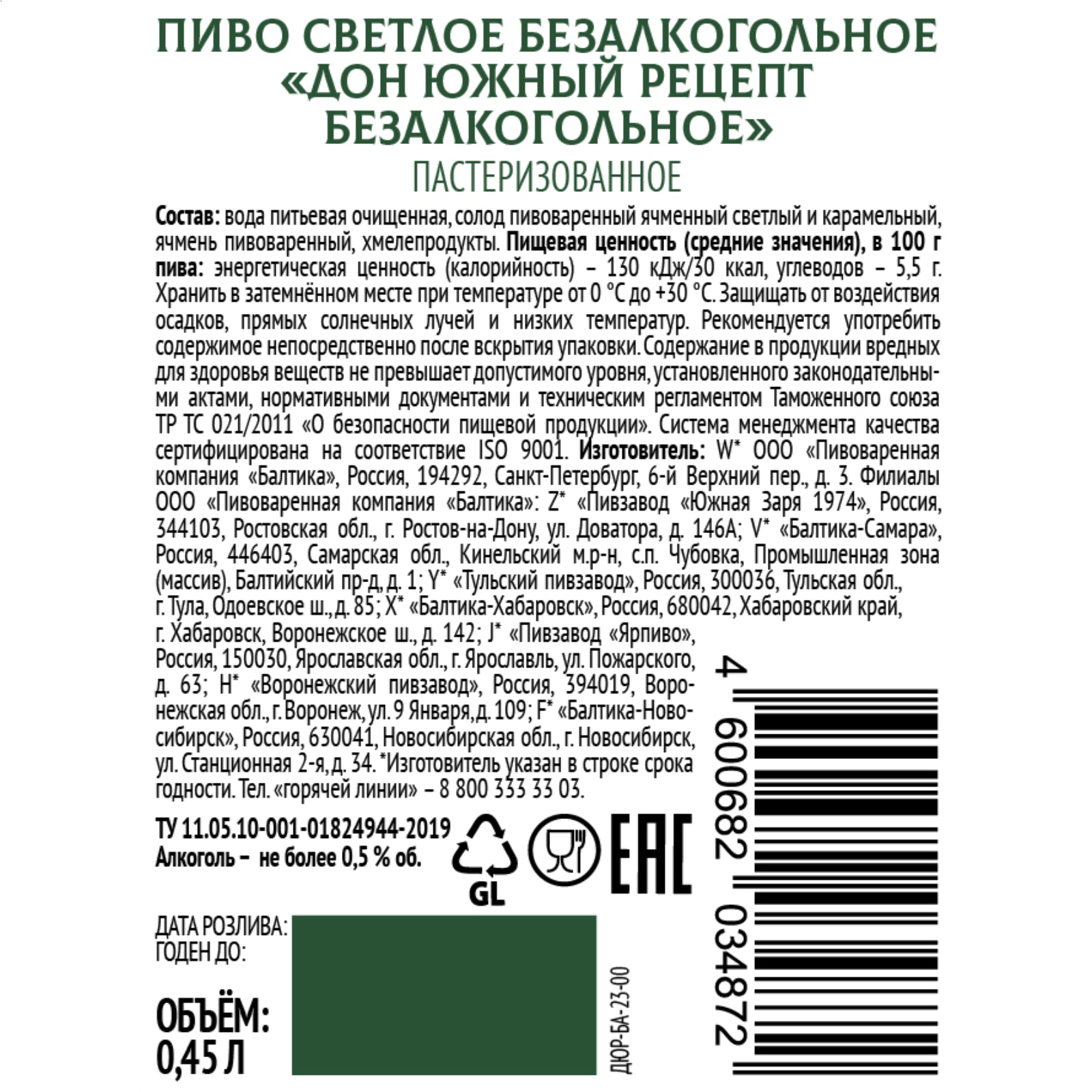 Пиво Дон Южный Рецепт Безалкогольное Светлое, 20 шт. х 0,45 л, бутылка интересное:
