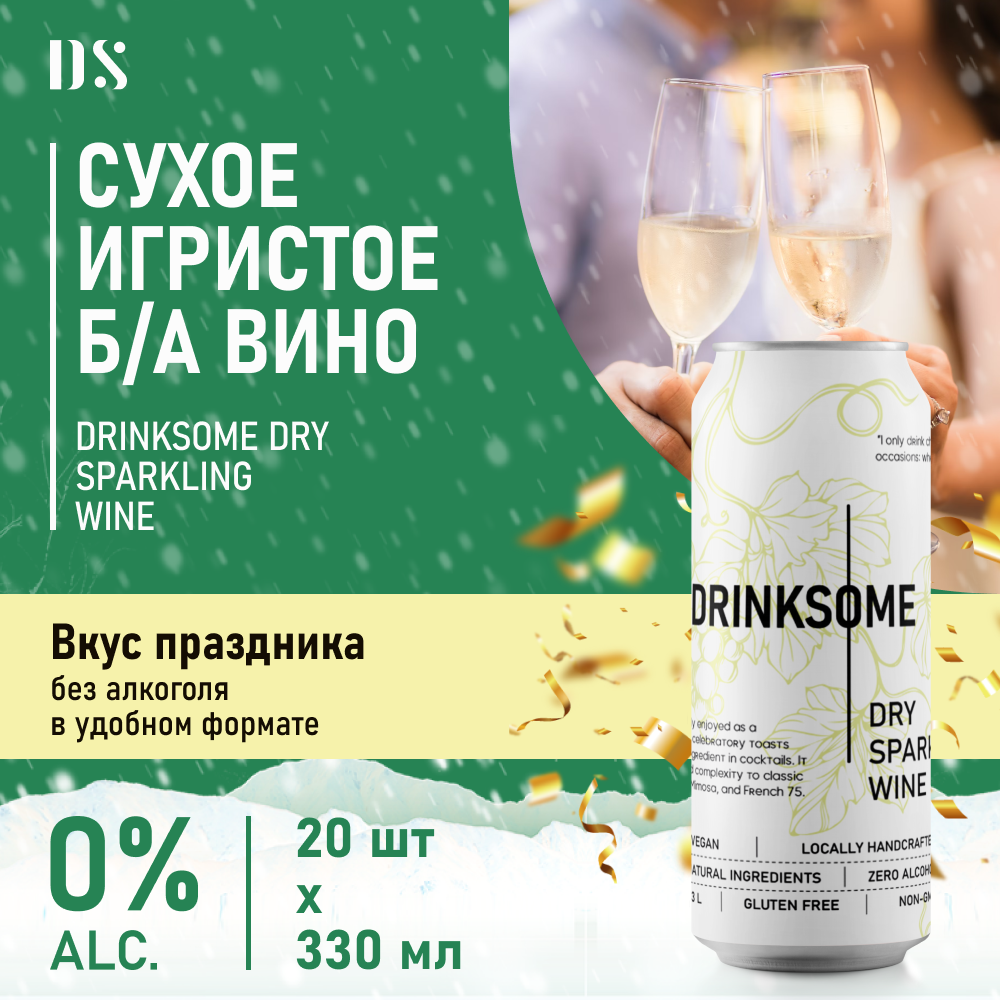 Вино игристое безалкогольное брют Drinksome Dry Sparkling Wine, 0,33 л 20 шт