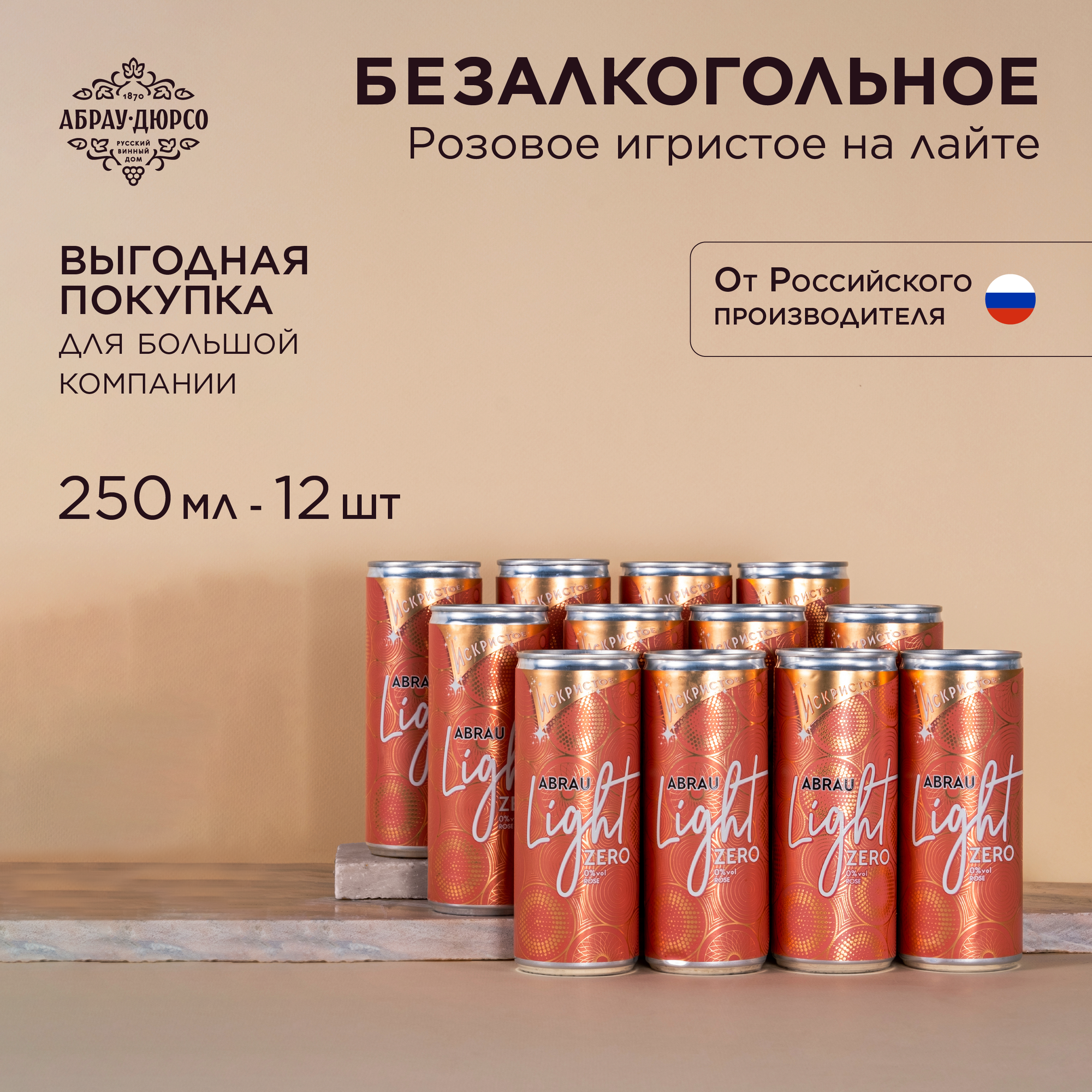 Напиток винный безалкогольный сильногазированный ароматизированный "ABRAU Light Zero rose" Абрау Лайт Зеро розовое, банка, 0,25 л. - 12 шт. интересное: