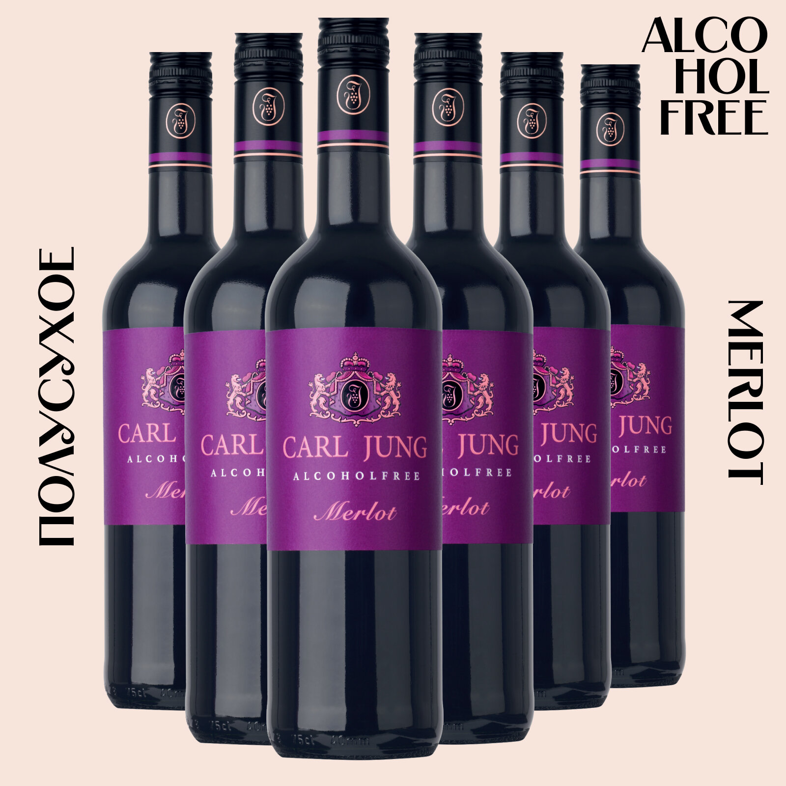Вино 100% натуральное, безалкогольное Carl Jung (Карл Юнг) Merlot (Мерло) красное полусухое, Германия, 750 мл x 6 шт. интересное: