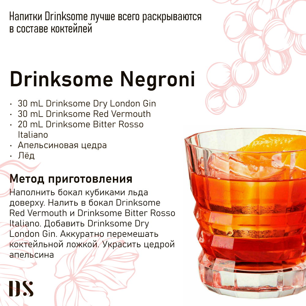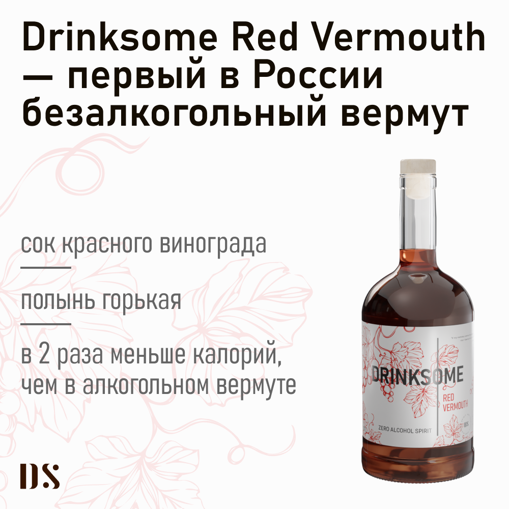 Вермут красный безалкогольный Drinksome Red Vermouth, основа для коктейлей интересное: