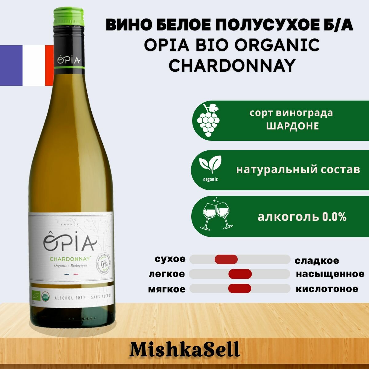 Безалкогольное вино белое OPIA BIO ORGANIC Chardonnay интересное: