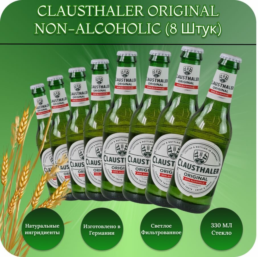 Сlausthaler Original / Пиво светлое безалкогольное фильтрованное Клаусталер 8шт. 330 мл.