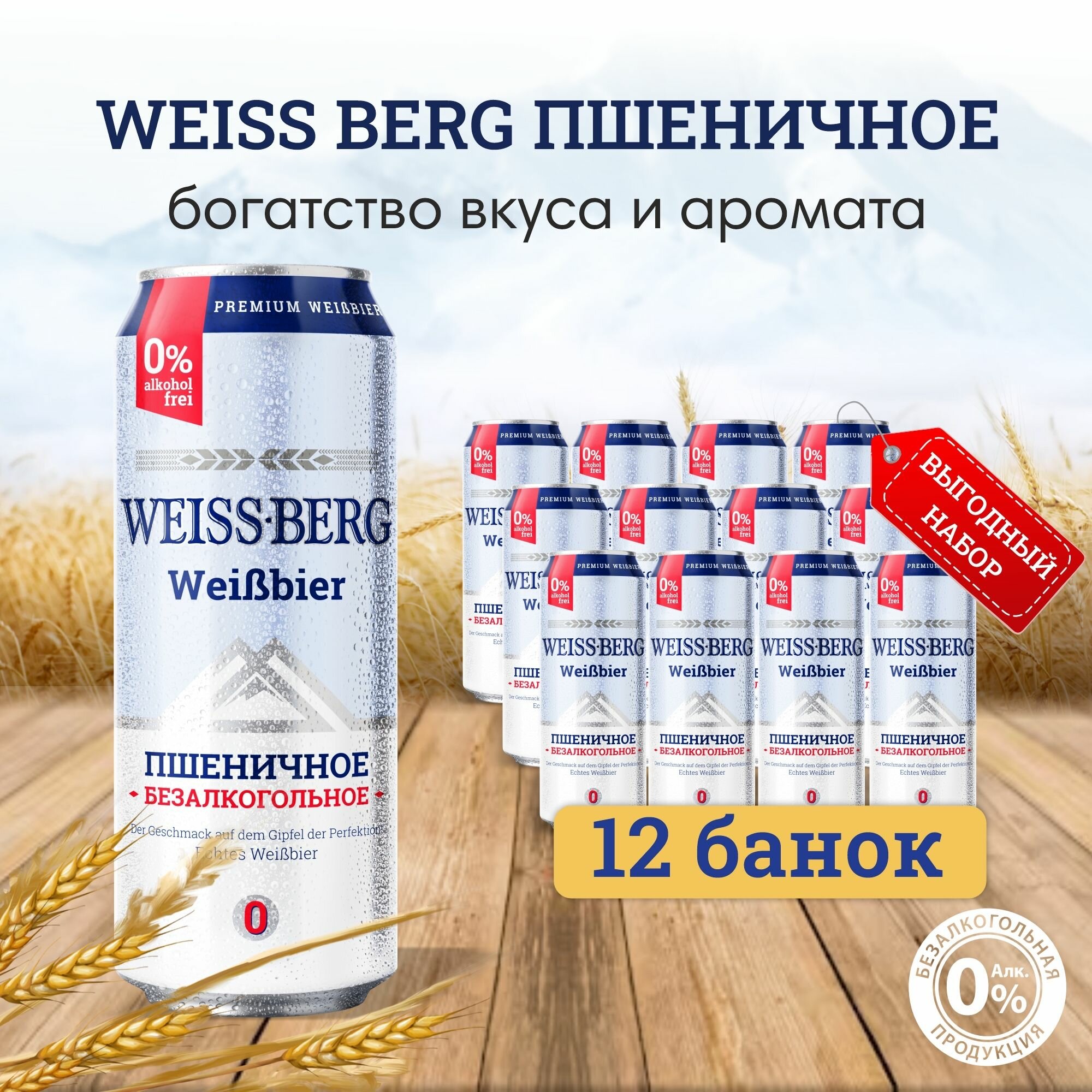 Пиво безалкогольное "Weissberg" 0,45л х 12шт, пшеничное интересное: