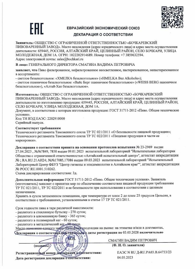 | Состав | Вода, солод пивоваренный пшеничный, солод пивоваренный ячменный: светлый, темный; хмелепродукты. Алк. Не более 0,5% об. |