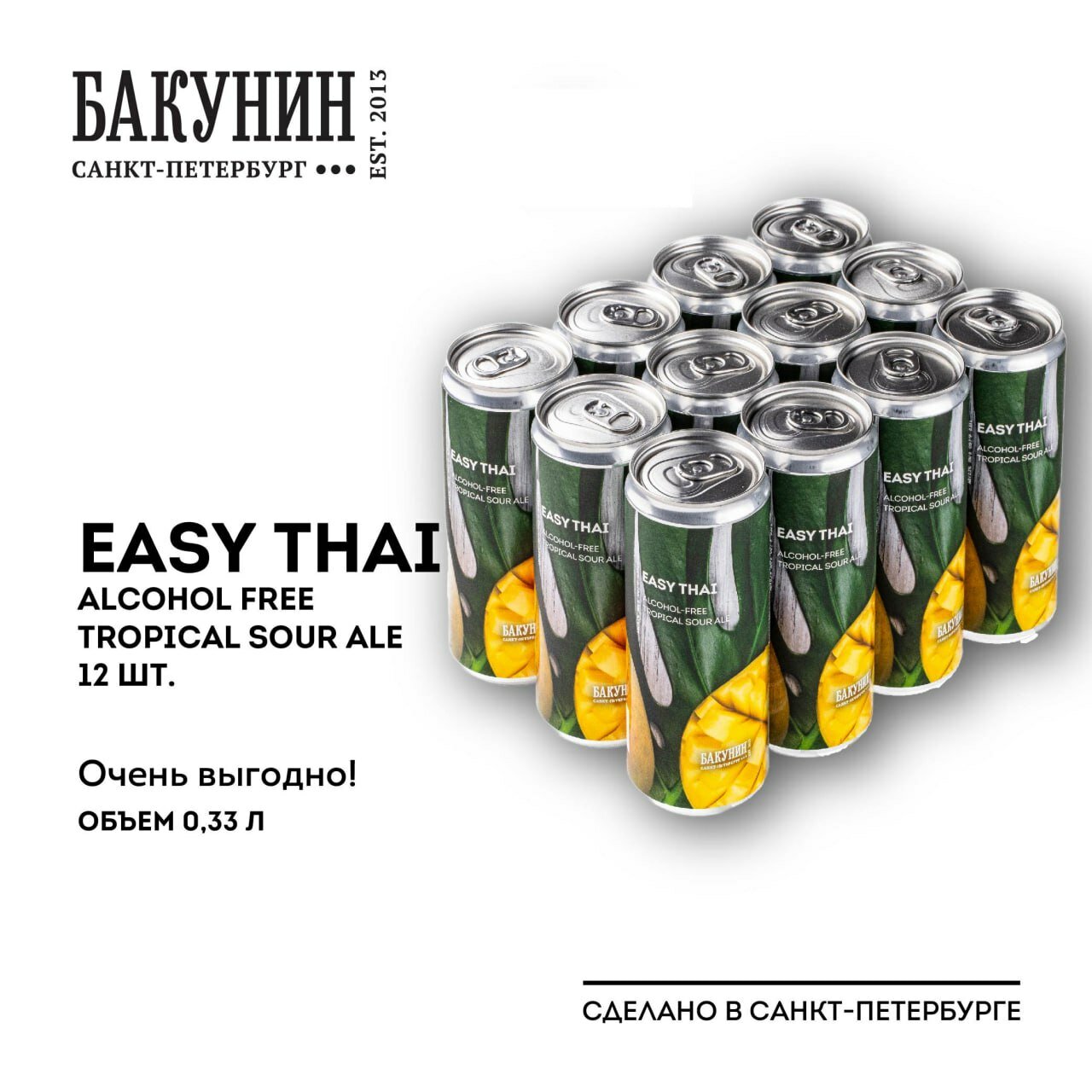 Безалкогольный тропический кислый эль Бакунин Easy Thai, 20шт по 0.33л (коробка)