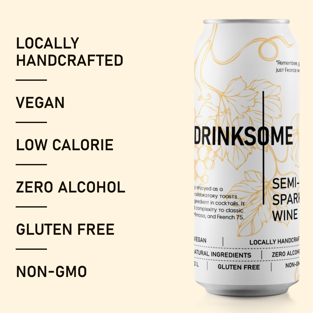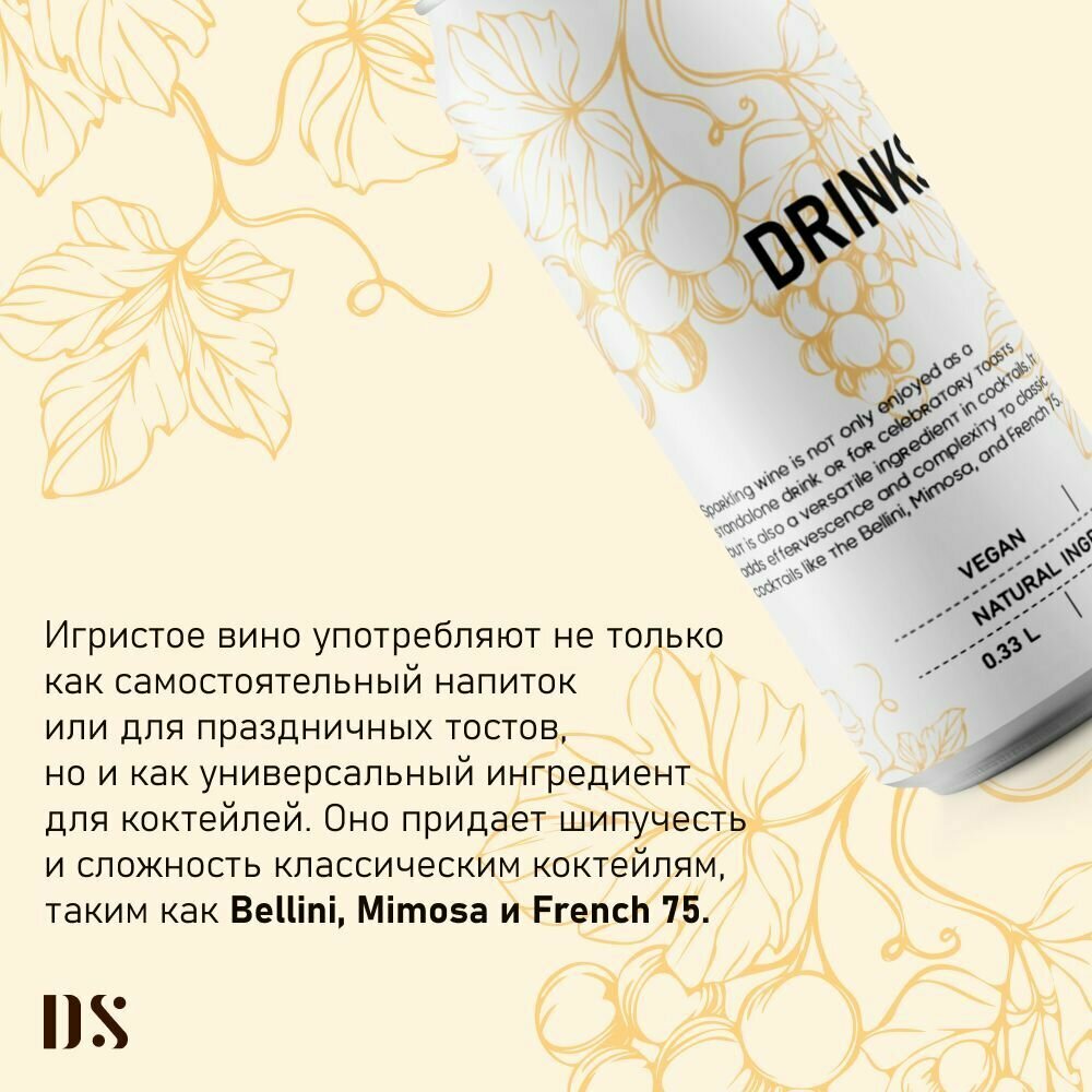 Игристое вино полусладкое безалкогольное Drinksome Semi-sweet Sparkling Wine, 20 шт