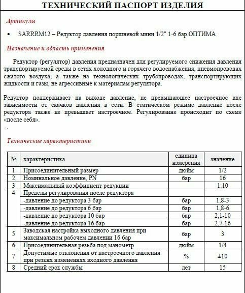 Редуктор давления поршневой мини 1/2" 1-6 Бар интересное: