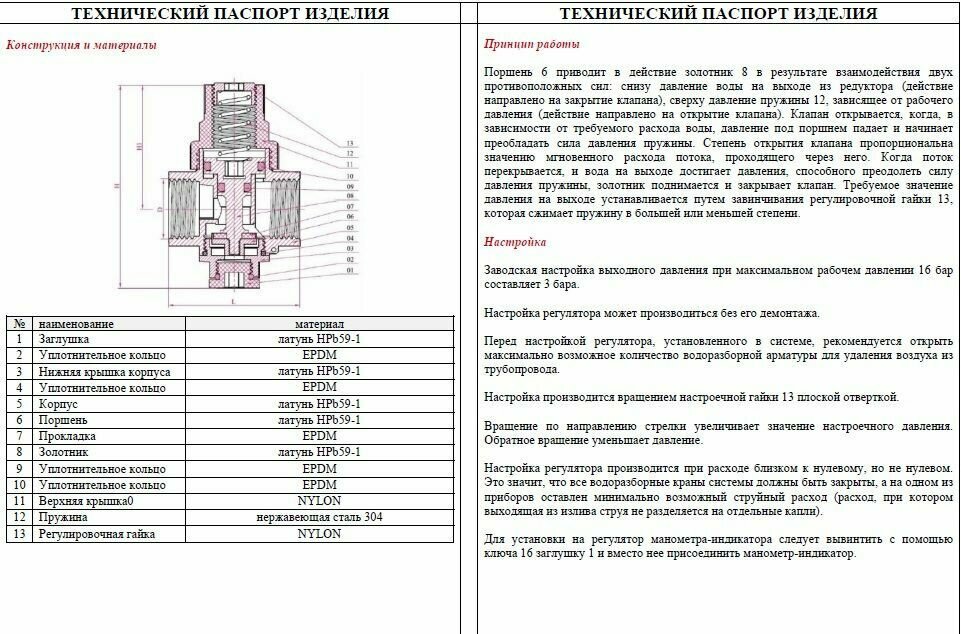 | Тип | редуктор давления |