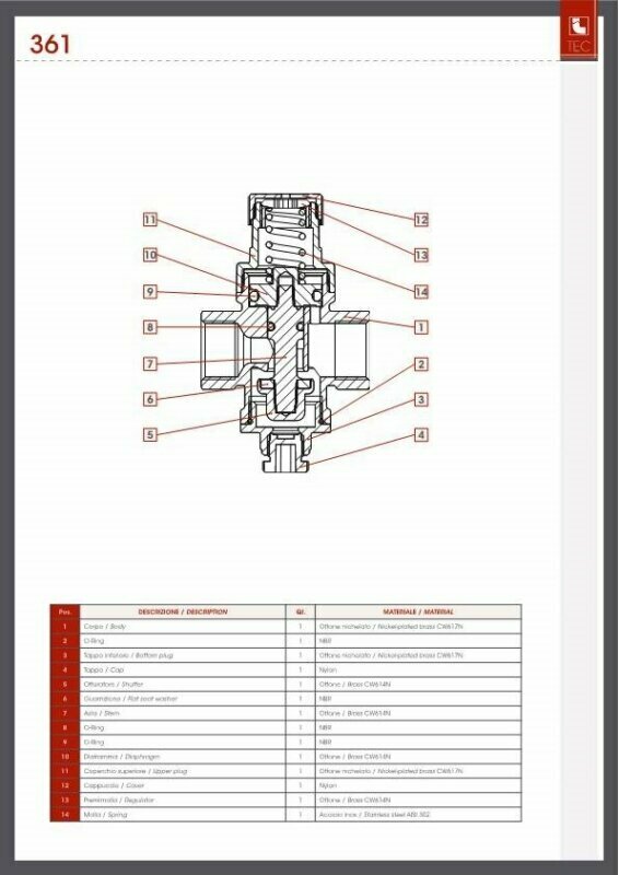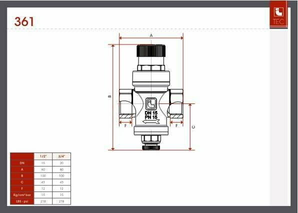 | Дополнительная информация | максимальное входное давление: 15 bar; выход для манометра 1/4” Редуктор давления Itap 361 - это редуктор поршневой модели, с выходами и внутренней резьбой, а также выходом для манометра. Клапан предназначен для стабилизации давления на входе и на выходе и используется, когда давление в системе слишком высокое, либо переменное. С помощью клапанов ITAP серии 361 можно задать определенный уровень давления на выходе, который будет поддерживаться вне зависимости от входного значения. Подходит для использования с водой, воздухом и неагрессивными средами в системах отопления, водоснабжения, кондиционирования, сжатого воздуха. |