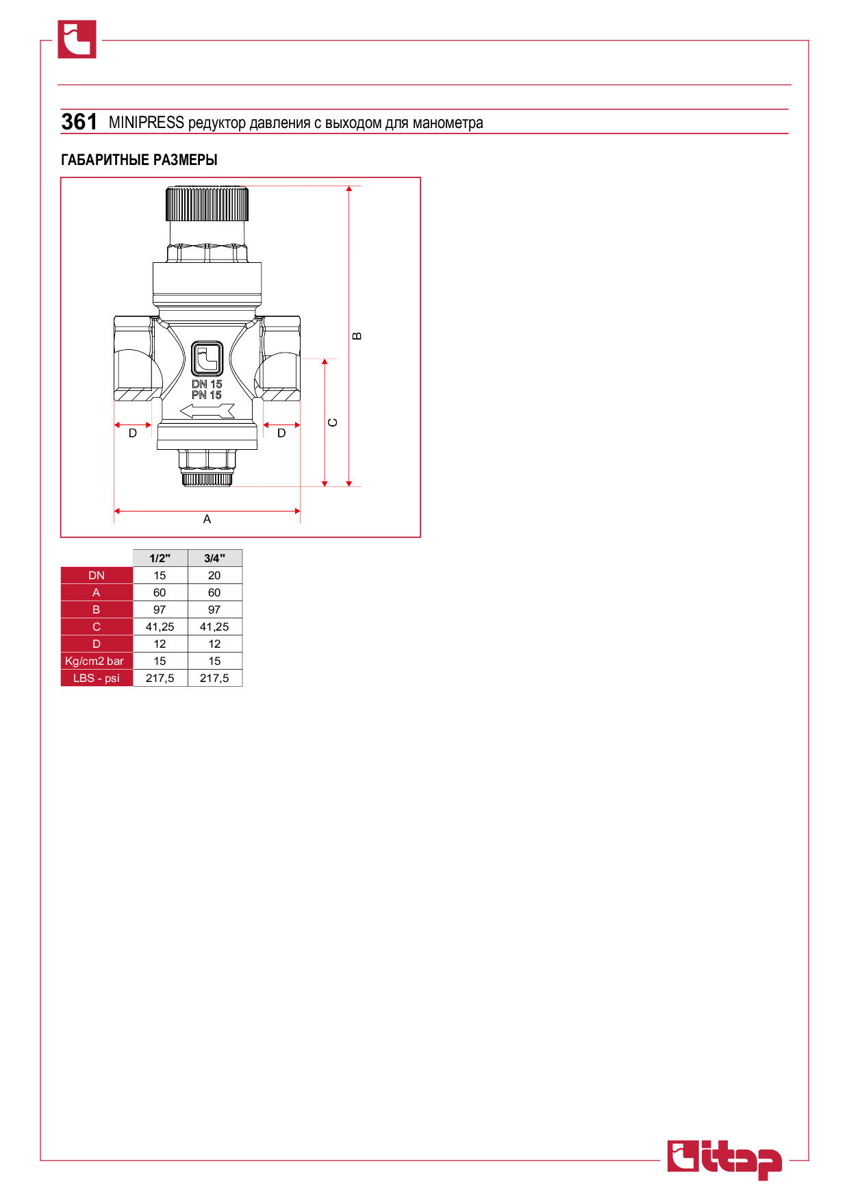 Редуктор давления ITAP 361 (3610012) муфтовый (ВР/ВР) Ду 15 (1/2") интересное:
