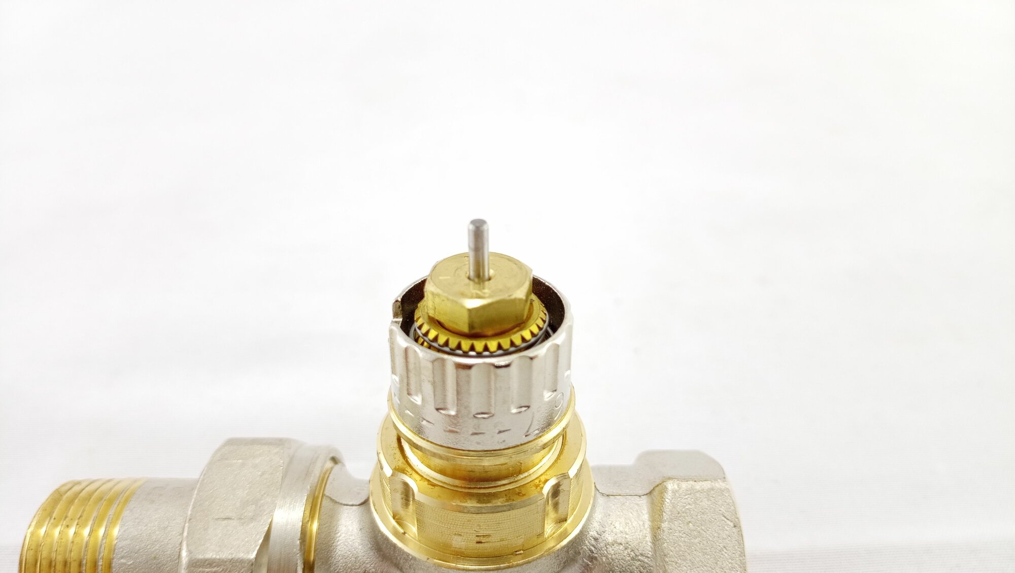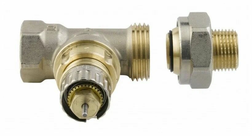 Вентиль, Oventrop, серия AV9, термостатический, проходной, DN-15, 1/2", 1/2", ВН, PN, бар-10, T°C -от +2 до +120, латунь, никелированный, плавная преднастройка