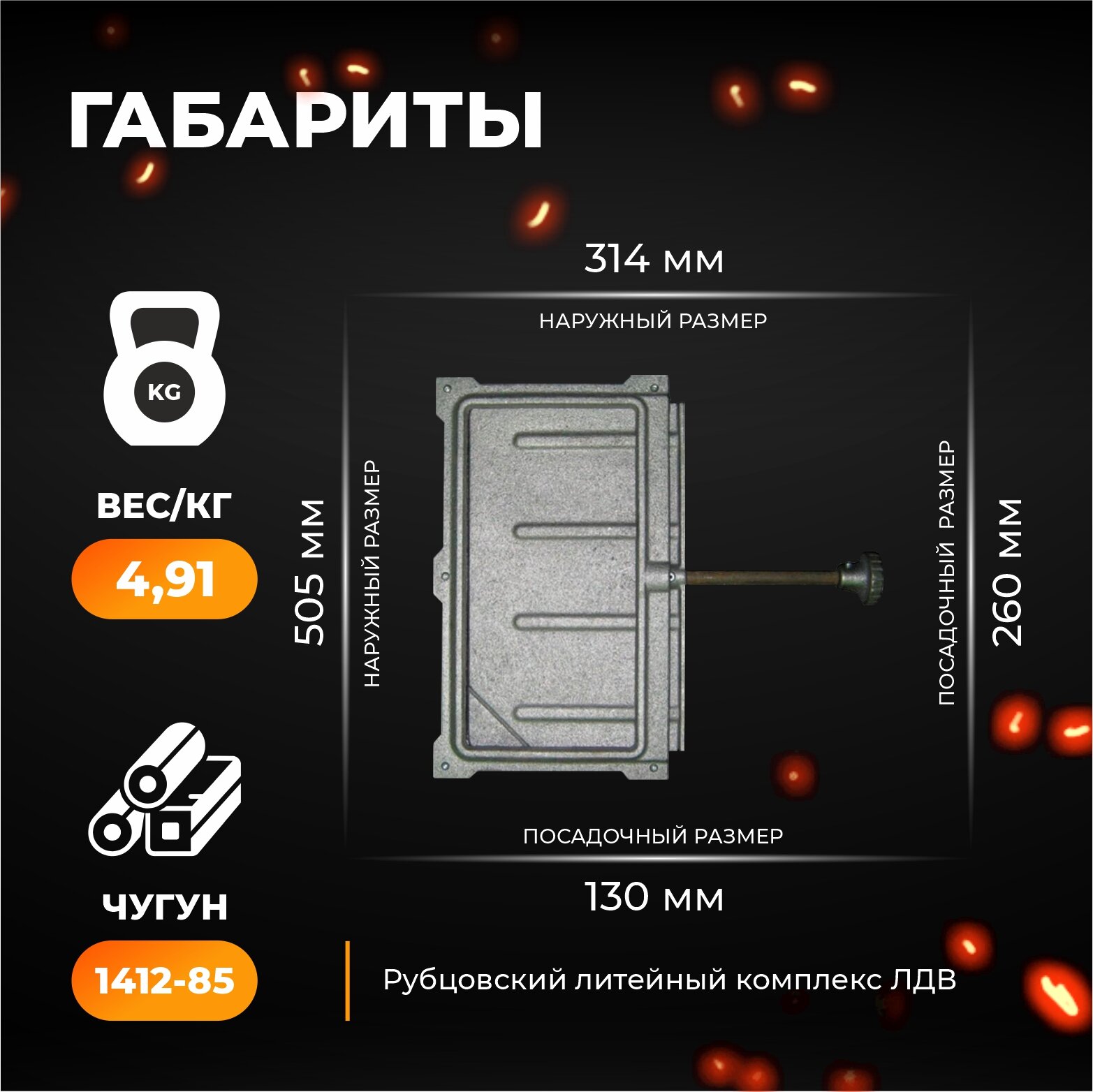 Стекло топочной дверки ДТ-4С огнеупорное -185x231x4 мм.