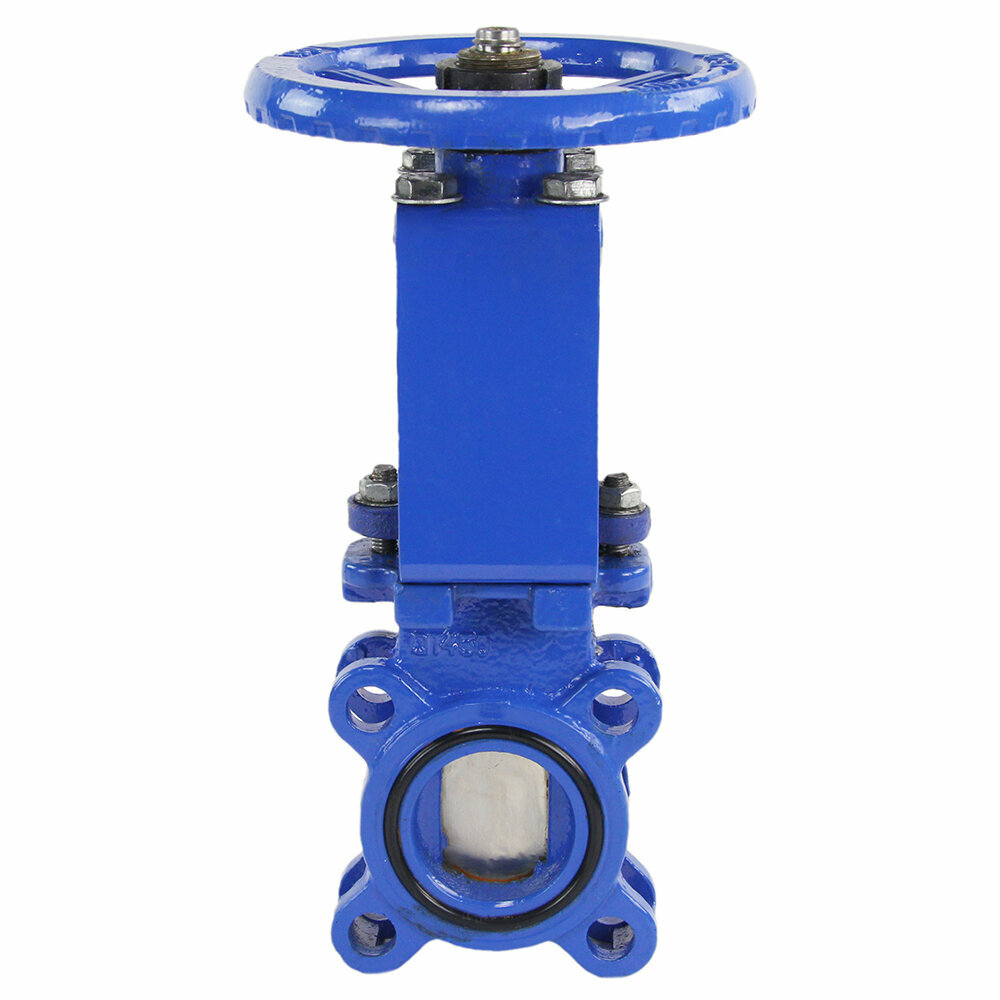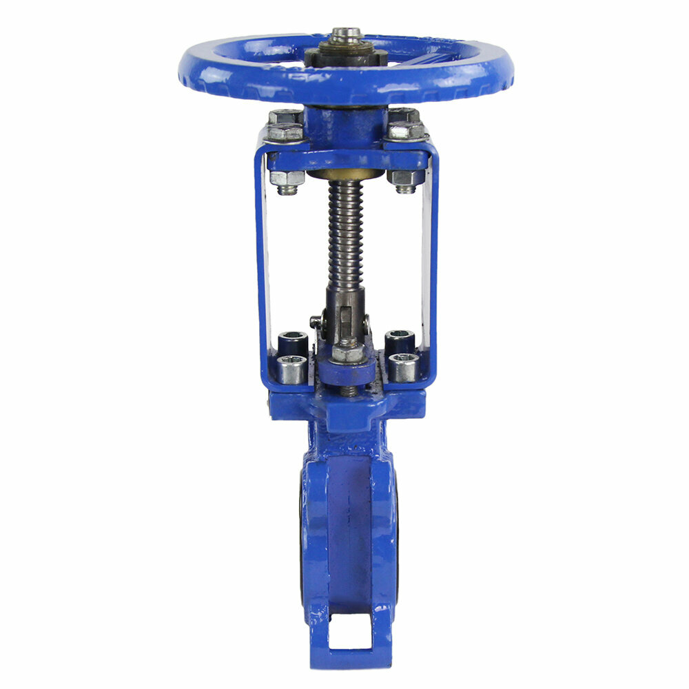 Задвижка шиберная DN.ru ДУ150 Ру10 NBR ножевая, чугунная, межфланцевая, двухсторонняя, с выдвижным шпинделем, управление штурвал