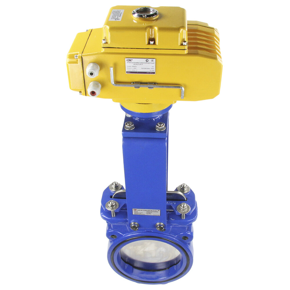 Задвижка шиберная DN.ru Ду100 Ру16 NBR ножевая чугунная межфланцевая двухсторонняя с электроприводом MT-100 220В