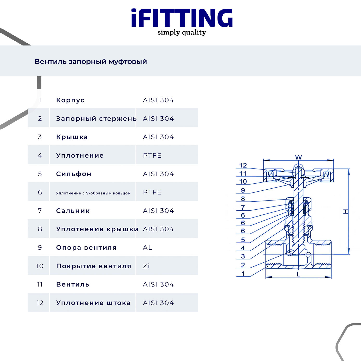 Вентиль запорный муфтовый нержавеющий AISI304 DN15 (1/2") PN64 интересное: