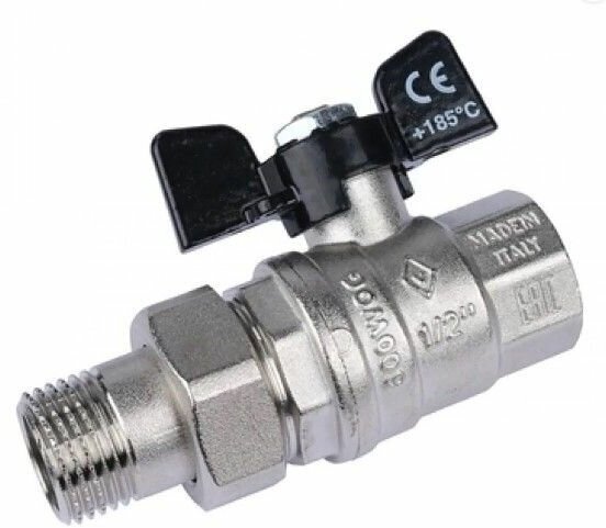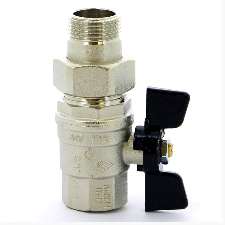 Шаровый кран с американкой Bugatti Valvosanitaria Oregon, латунь, диаметр присоединения 3/4 дюйма