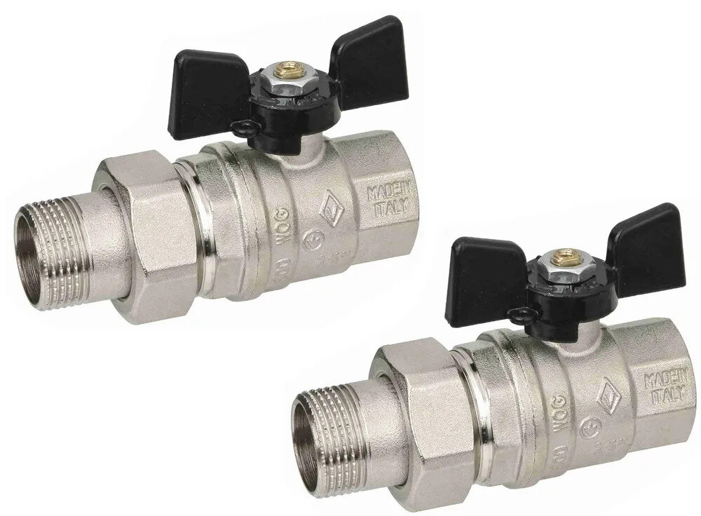Шаровый кран Bugatti Valvosanitaria "OREGON" 3/4 ВР/НР, муфтовый, с американкой, 2шт