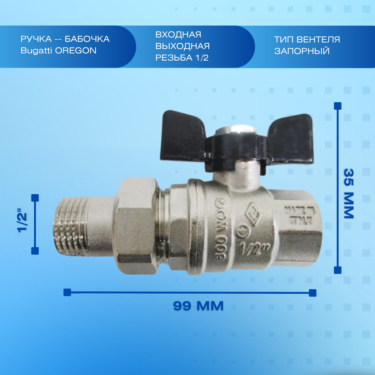 Bugatti Кран шаровый американка 1/2 ручка бабочка OREGON 322