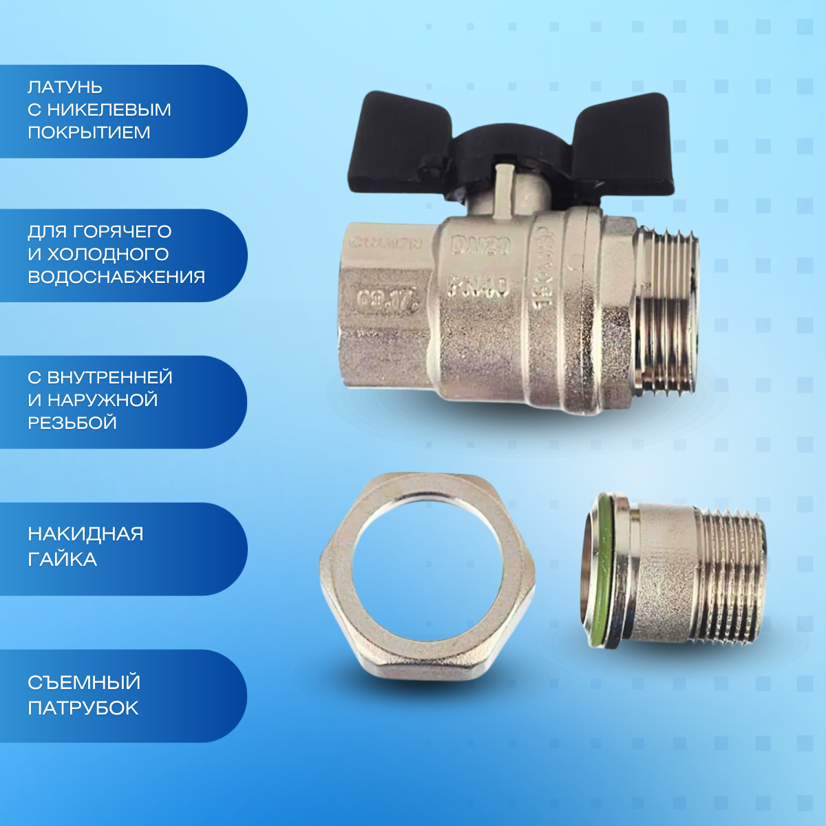 Кран шаровый Bugatti 3/4" с ручкой "бабочка"