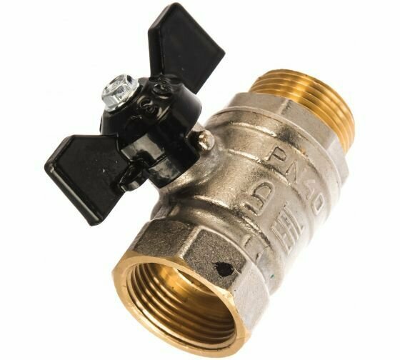 Кран шаровой латунный ВР-НР полнопроходной, ручка-бабочка (черная), Ду 15 (1/2"), Ру 40, LD Pride 47.15.В-Н.Б, (уп. 3шт.)