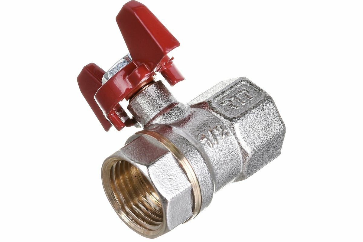 Кран шаровой ручка бабочка латунь внутр./внутр. резьба 1/2дюйм PN25 никель (инд. упак.) RTP 34881